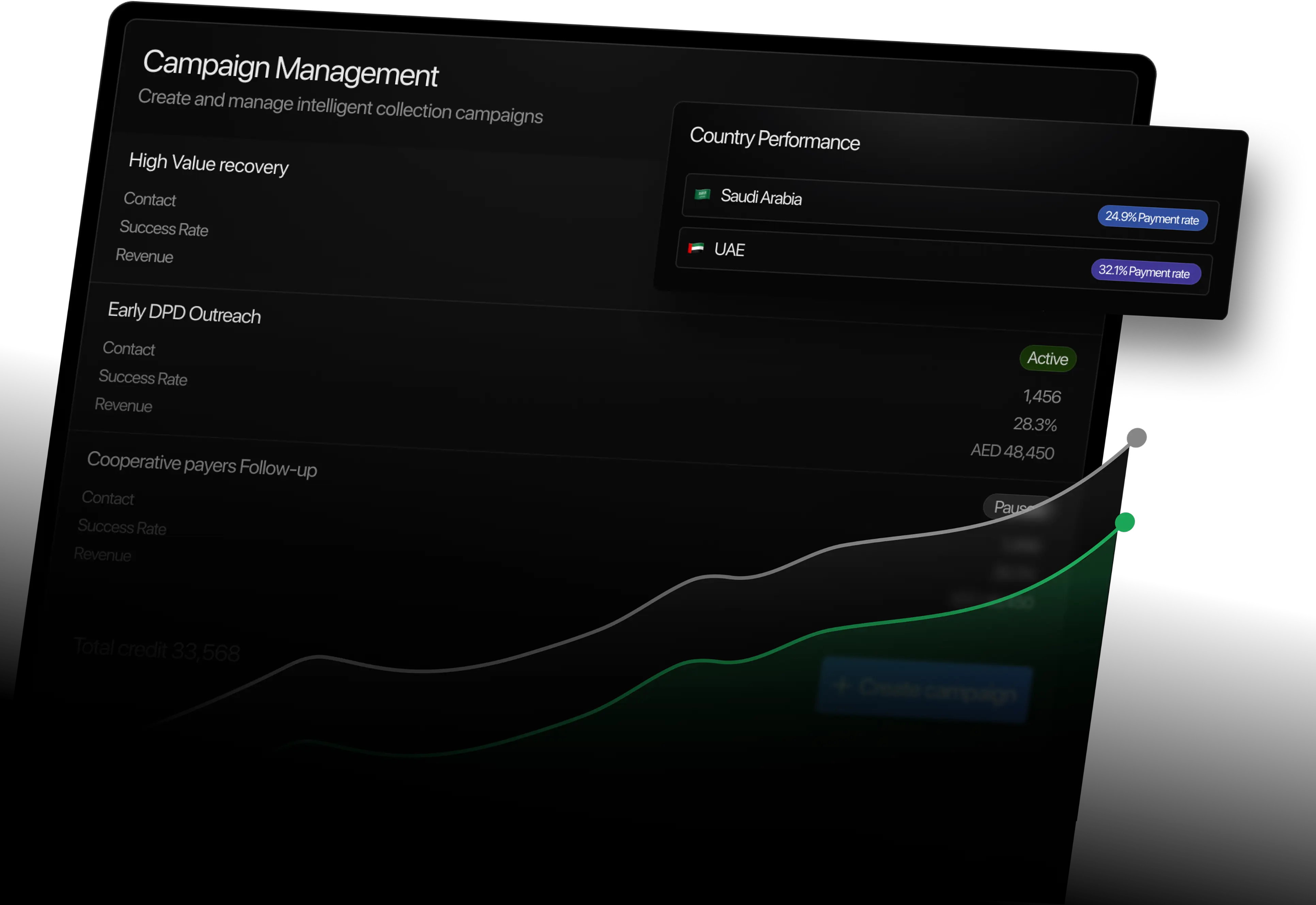 Headquartered in the UAE and serving clients globally, we combine predictive AI models, real-time data orchestration, and omni-channel communication to help institutions increase recovery, reduce cost-to-collect, and safeguard customer relationships.
